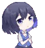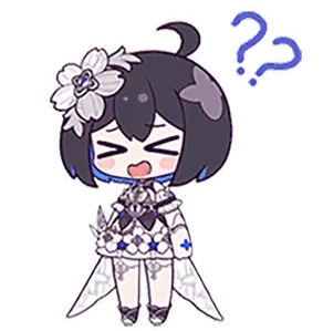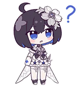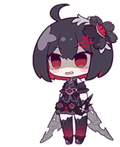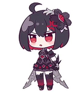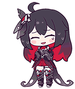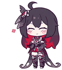Chibi Seele from Honkai Impact, smiling sweetly in her dark and red outfit, perfect for expressing cute emotions.
