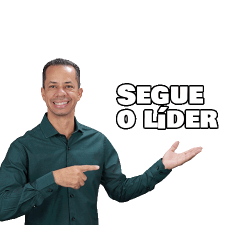 Isaac Martins points and smiles, encouraging viewers to 'Segue O Líder' (Follow The Leader) with a positive gesture.