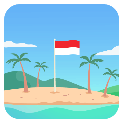 Celebrate Indonesia's Independence Day with this vibrant sticker featuring the national flag flying proudly on a tropical beach.