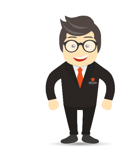Selva Selvinha, a friendly cartoon man in a suit and glasses, winks with a cheerful expression.