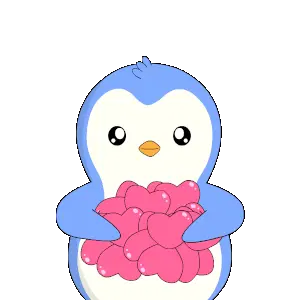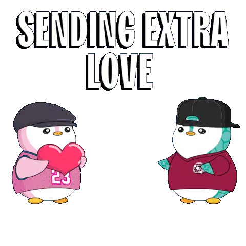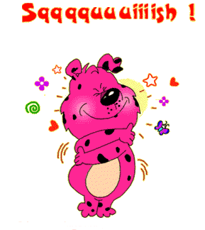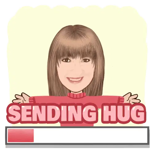 A cute pink spotted creature squishes itself happily, surrounded by sparkles, sending warm, affectionate hugs.