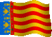 A pixel art animated sticker of the Senyera, the flag of the Valencian Community, waving in the wind.