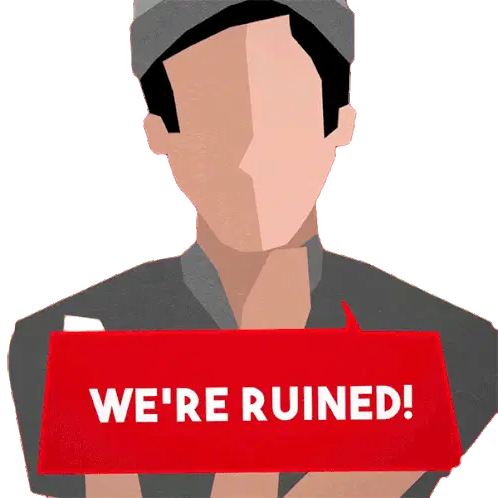 A sad yellow blob character expresses heartbreak by tearing apart a red heart, symbolizing a painful separation or breakup.