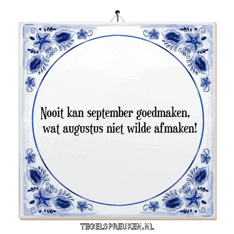a blue and white tile with the words nooit kan september goedmaken wat augustus niet wilde afmaken on it