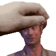 Sergio Santos, a pixel art man in a hat, gets a playful touch on his head from a hand.