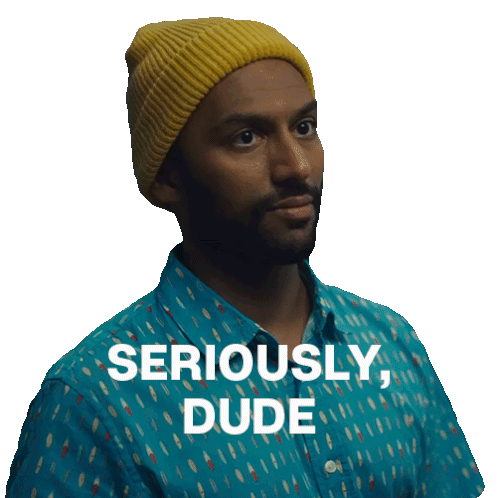 Eric, a man in a yellow beanie, looks surprised as the text 'SERIOUSLY, DUDE' appears on screen.