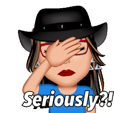 An emoji-style character facepalms and then raises a hand with the text 'Seriously?!' expressing disbelief or frustration.