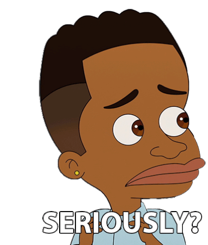 Elijah from Big Mouth expresses disbelief with a wide-eyed 'Seriously?' in this animated sticker.