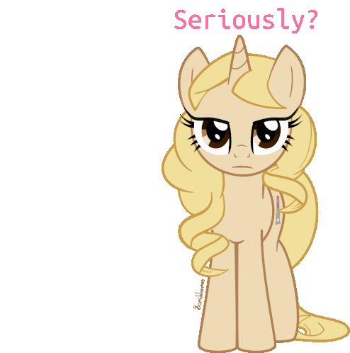 A skeptical My Little Pony unicorn asks "Seriously?" with an annoyed expression.
