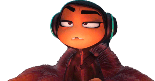 Ms. Tarantula from The Bad Guys looks seriously annoyed, wearing her headphones in this animated sticker.