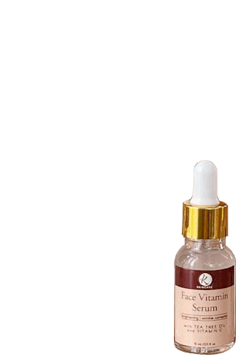 A clear glass bottle of Kscserum Face Vitamin Serum with a dropper, featuring ingredients like Tea Tree Oil and Vitamin C.
