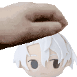 A gentle hand gives Setsuna Yashiro of Anthos a loving pet on the head, a cute and comforting gesture.