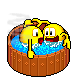 Two pixelated emoticons with crazy eyes are seen humping in a bubbly hot tub, creating a humorous and suggestive scene.