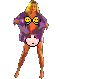 A pixel art sticker featuring a woman in a purple cape, with smiley face emoticons covering her body in a flirty tease.