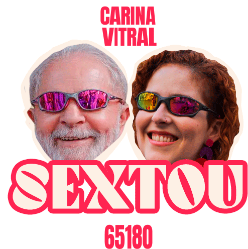 Carina Vitral and Lula celebrate 'Sextou' (TGIF) with smiles and gestures, perfect for Friday vibes.