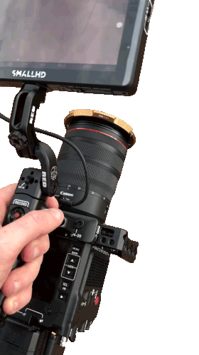 a person is holding a smallhd camera in their hand