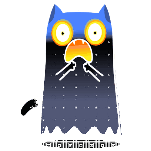 The Shadowkitty character transforms from a scared head to a full, ghost-like body, perfect for Telegram chats.