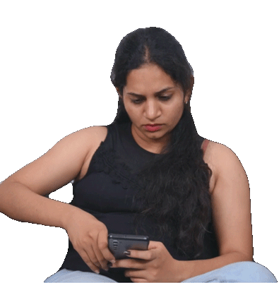 Sayali Sonule gives a suspicious look, glancing sideways while holding her phone, conveying skepticism or confusion.