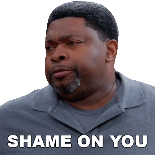 Curtis Payne from House of Payne gives a disapproving look with the caption 'SHAME ON YOU' for a strong reaction.