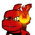 Shaoran Yt Vt, a pixel art red dragon, features yellow eyes and a vibrant flame emanating from behind its head.