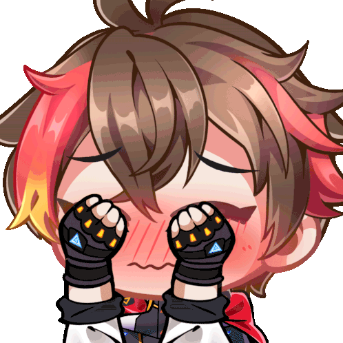 a cartoon drawing of a boy with his eyes closed and his hands on his face
