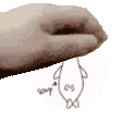 A hand gently headpatting a drawing of the 'Shiver of Sharks in a Coat' character, perfect for profile pictures.