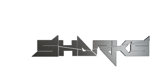 Animated text logo for Sharksmusic Dsg, featuring the word 'SHARKS' forming and then distorting dynamically.