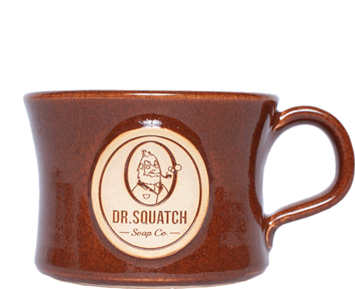 A brown ceramic Dr. Squatch shave mug, featuring the brand's iconic bearded man logo. Perfect for a classic shaving routine.