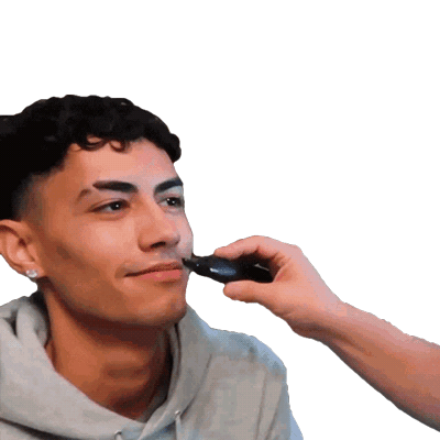 Giovanni Rivera gets his mustache carefully trimmed with an electric shaver, showing a focused expression.