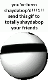 A classic internet troll meme featuring a rotating black bar on a white sphere, accompanied by the text 'you've been shaydabop'd!!!1!!'. Send to friends.