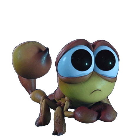 Nigel, the scorpion from Back to the Outback, looks sad and sheds a tear, feeling upset and emotional.