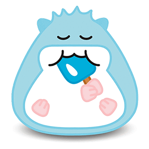 Adorable blue character happily enjoying a refreshing blue sherbet popsicle, eyes closed in sweet delight.