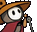 An animated sticker featuring Sherma-dink-1x, a cartoon character in a cowboy hat, confidently holding a sword.
