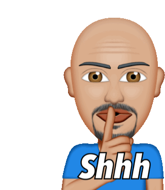 A bald man emoji with a goatee makes a 'shhh' gesture, pressing his finger to his lips, indicating silence or to keep quiet.