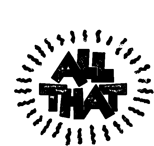 An animated black and white logo for 'All That' from Nickelodeon, featuring a distressed font and a subtle shining effect.