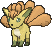 A cute pixel art animated sticker of a Shiny Vulpix, the Fire Type Pokémon, with its distinctive multiple tails.