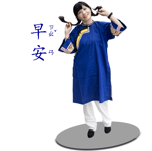 Shirley Henry King, a cheerful woman in traditional attire, wishes 'Good Morning' with animated Chinese text.