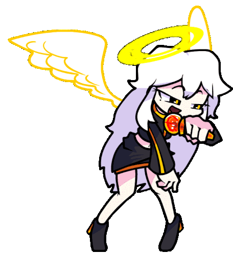 Animated character Shiro, an angel with a halo and wings, sings into a microphone in a vibrant FNF style.