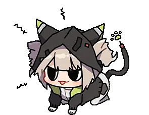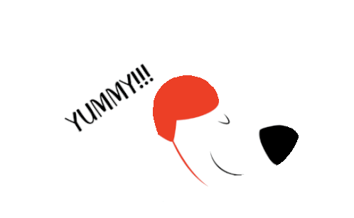 A cute cartoon head of Shiro Express with a red ear and black nose, exclaiming 'YUMMY!!!' with enthusiasm.