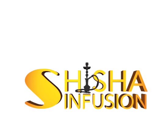 A dynamic 3D logo for Shisha Infusion, featuring golden text and a black hookah silhouette, spinning with a reflective effect.