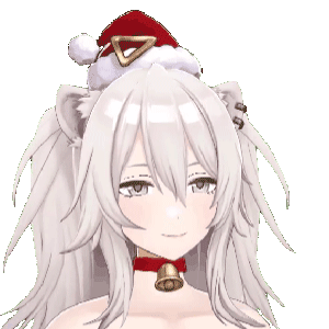 Shishiro Botan, the Hololive VTuber, smiles sweetly in her festive Christmas outfit, complete with a Santa hat and bell collar.