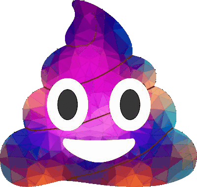 A vibrant, polygonal poop emoji with a smiling face, featuring a unicorn poop design in bright colors.