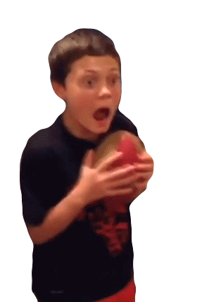A young boy, featured in Failarmy, looks shocked and screams while holding a red and brown ball.