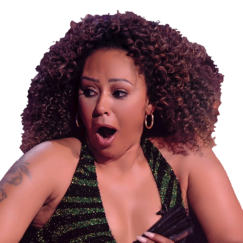 Mel B, the iconic Spice Girl, reacts with a genuinely shocked and surprised expression, mouth agape, during a show.