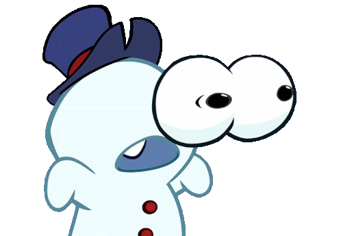 Snow Nom, the adorable character from Om Nom Stories, looks utterly shocked with wide eyes and a gaping mouth.