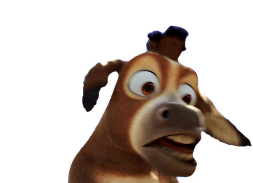 Bo the donkey, voiced by Steven Yeun, reacts with a wide-eyed, open-mouthed expression of shock and surprise.