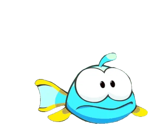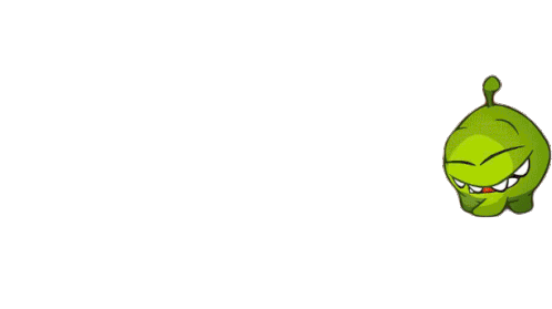 Om Nom, the green character from Cut The Rope, shows a happy and surprised reaction, opening his eyes wide with a big smile.