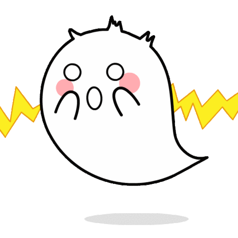 A cute cartoon ghost with an open mouth and lightning bolts looks utterly shocked and surprised, expressing disbelief.