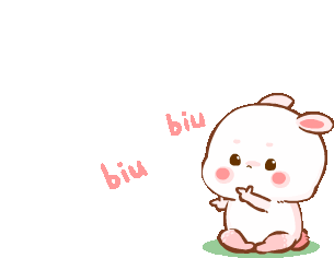 A cute, chubby white bear-like character points its finger like a gun, making a "shoot biu" gesture.