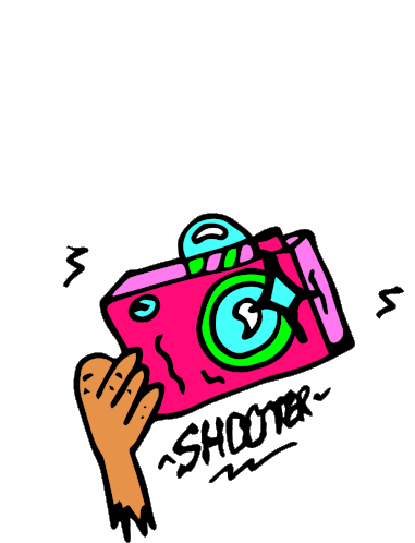 A vibrant, psychedelic photographer figure with a camera, featuring swirling colors and a trippy art style.